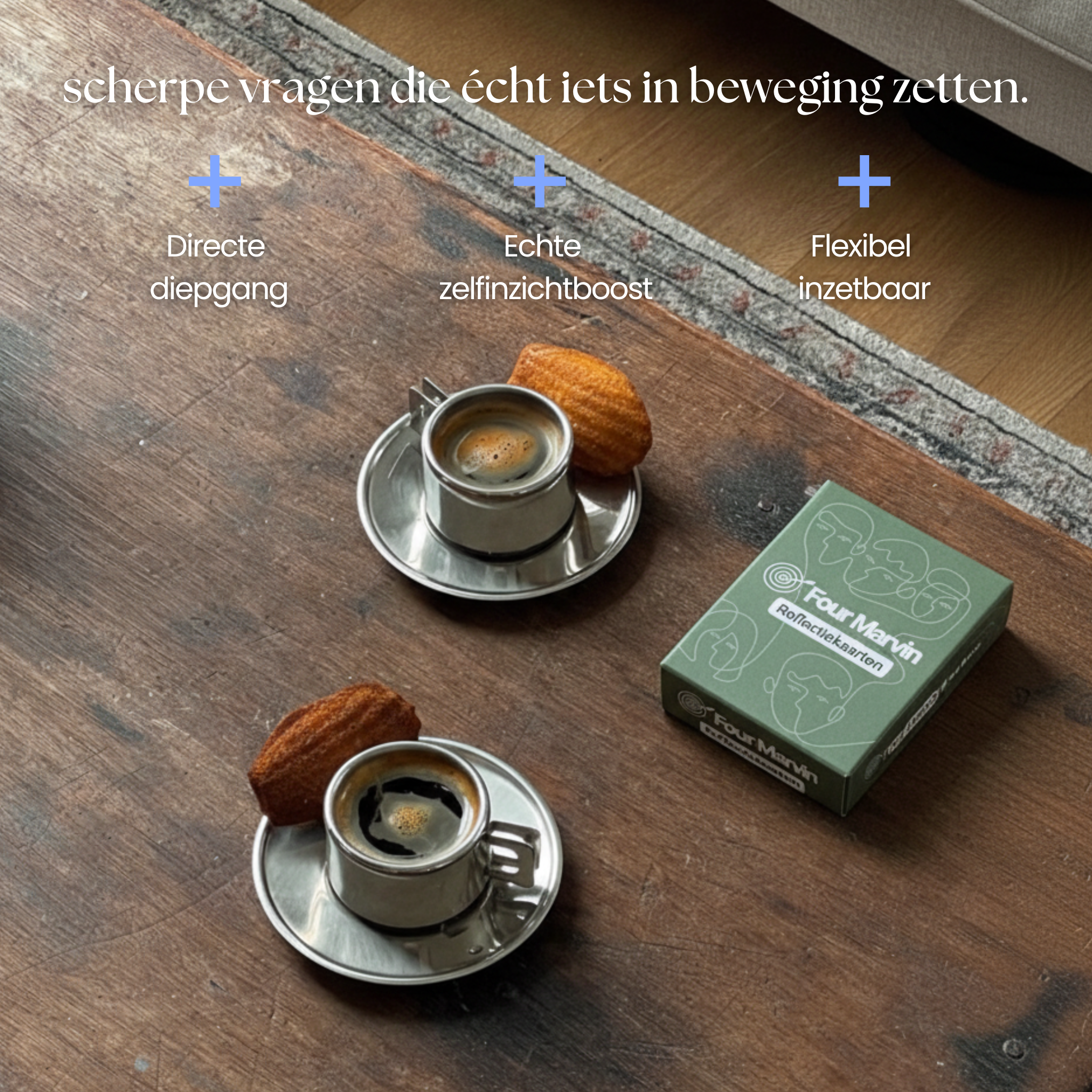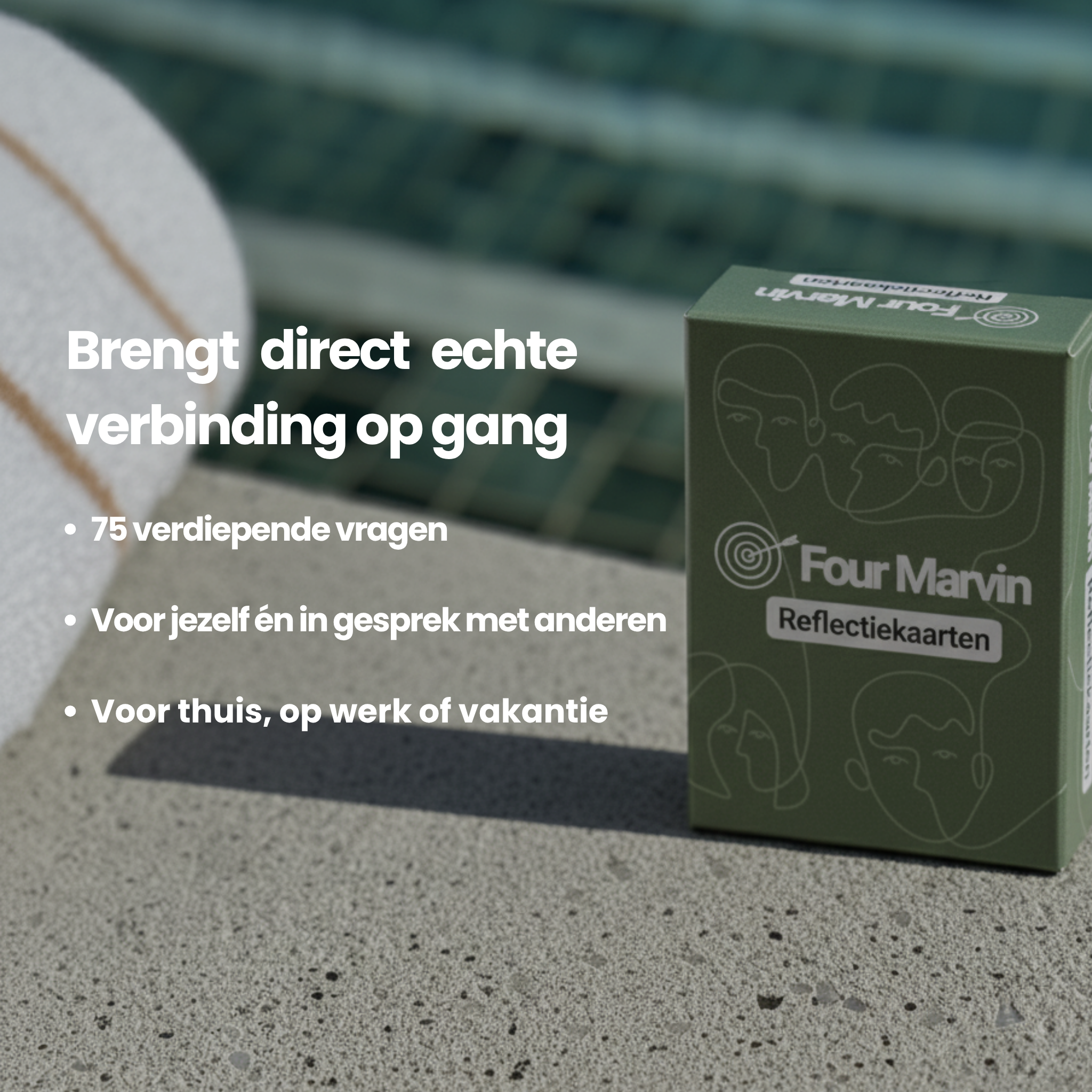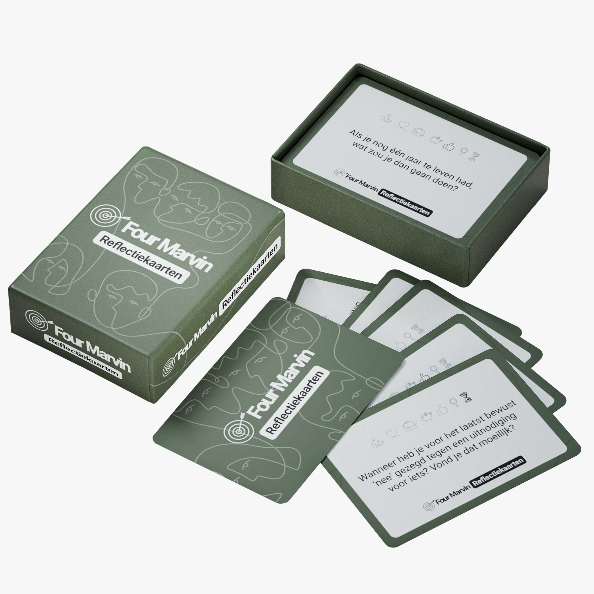 De gesprekskaarten van Four Marvin® helpen je om minder te scrollen en meer leuke gesprekken te voeren over andere onderwerpen dan normaal.