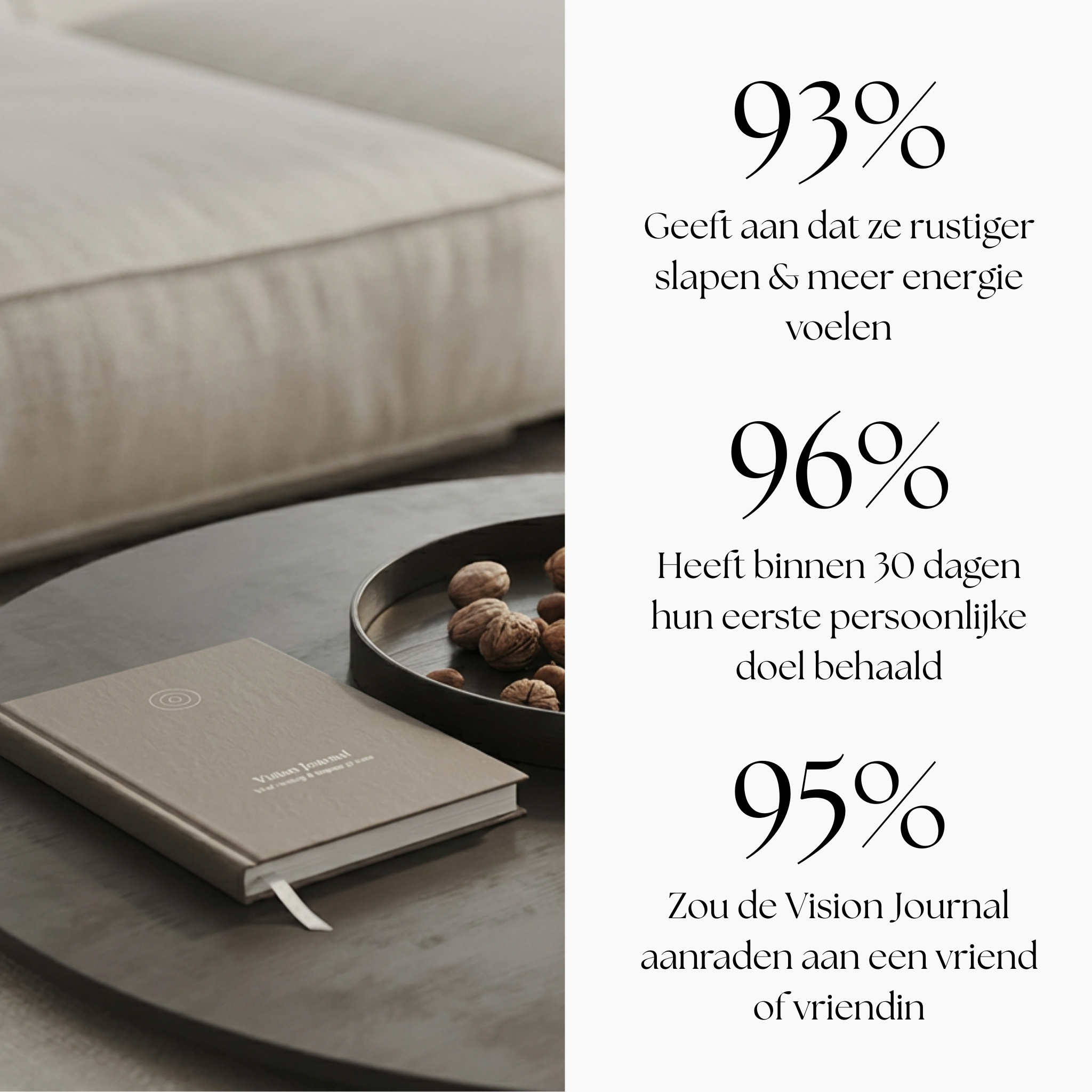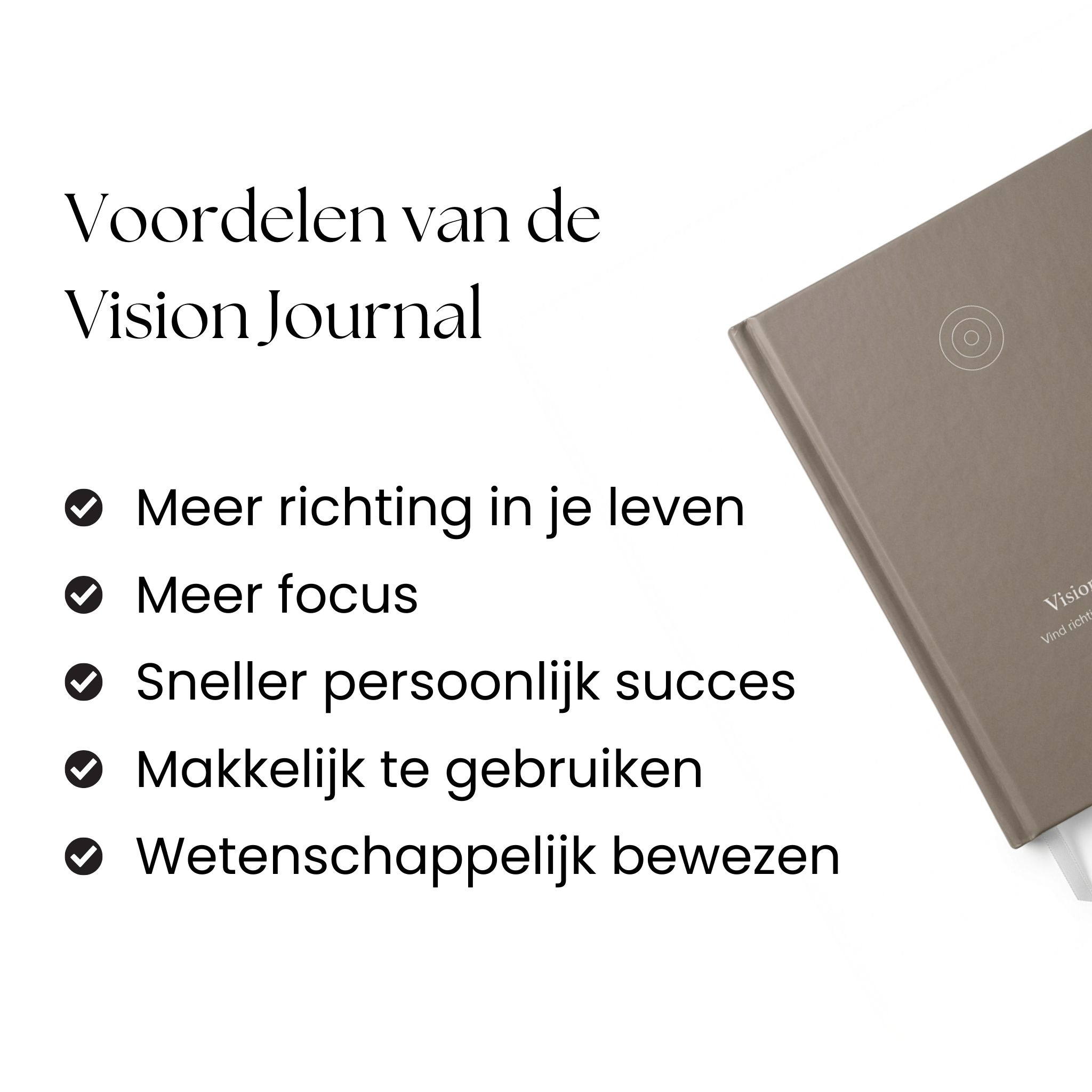 Nee. Dit is geen 'manifestatieboek' of feelgood-gimmick. De Vision Journal is ontworpen op basis van coachingprincipes en gedragspsychologie. Niet om je bezig te houden, maar om je te helpen kiezen, focussen en realiseren.
