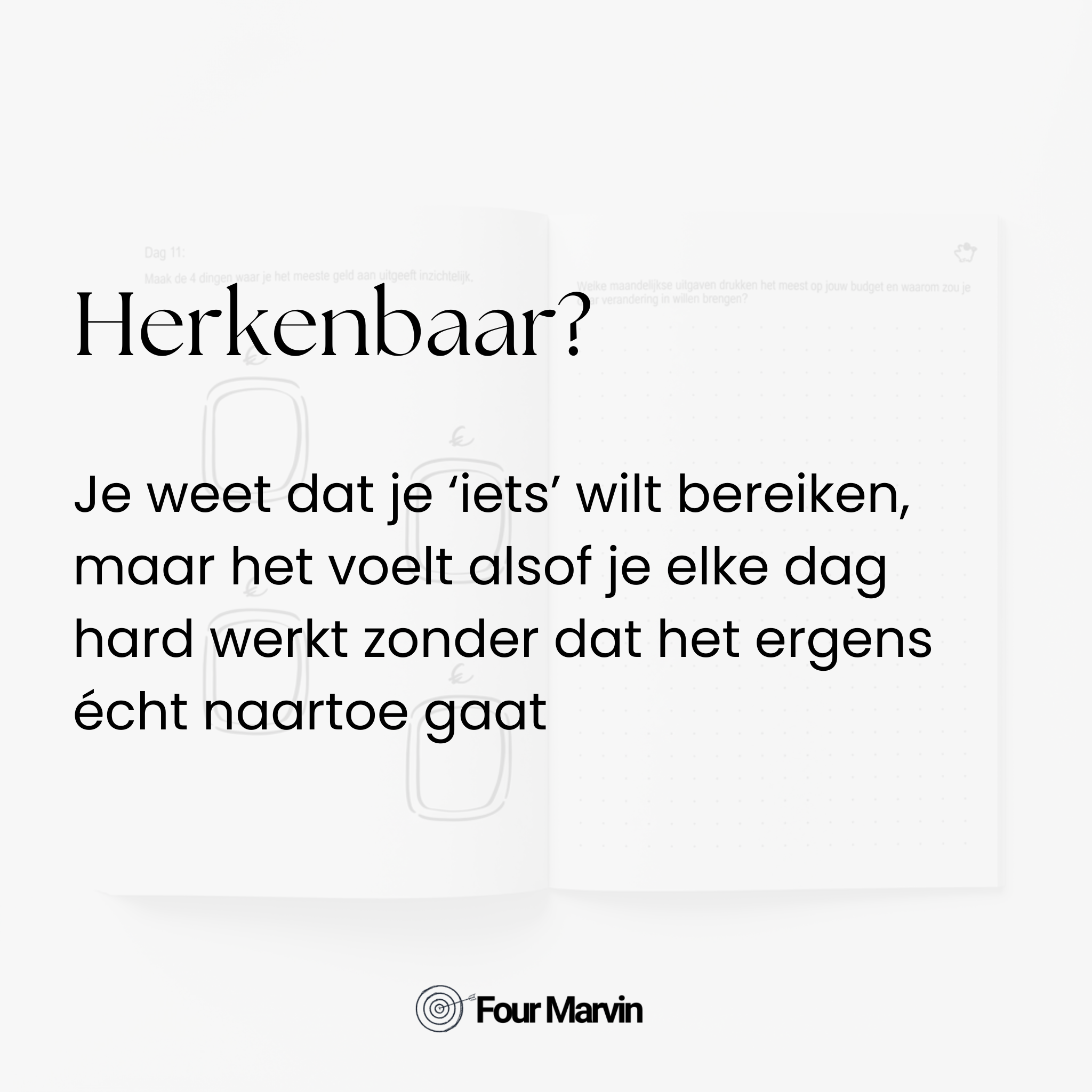Twijfel jij nog over wat je wilt bereiken? Dan is dit hét ideale hulpmiddel. De Vision Journal van Four Marvin® helpt je om je persoonlijke doelen te bepalen.